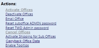 - In the Actions pane, click the Activate Shipping for Sub Offices link.